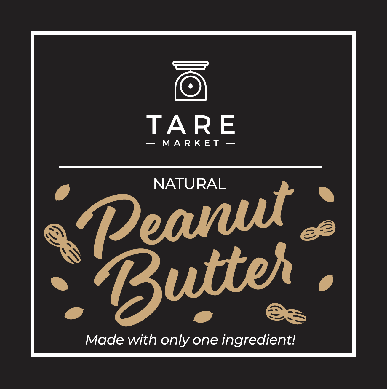 for pre-filled jars. Like all business in 2020 adapting to COVID measure, one solution for this package free market was to offer pre-filled jars that make ideal gifts for the holidays. Tags for soup and cookies were designed for winter gift giving. A candy treat label was designed for Valentines & Easter. Tare Market wanted tags that could be easily printed on site and on brand.